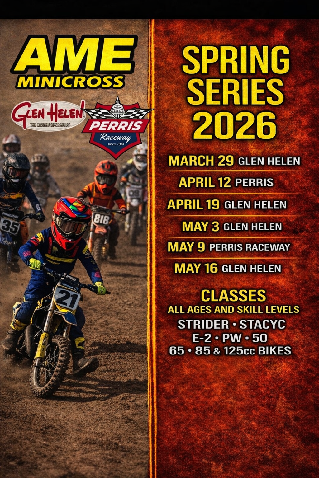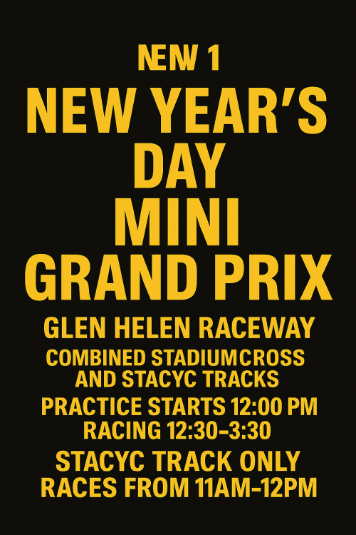 THURSDAY NIGHT MINI NIGHT Click Here Click Here Sign Up For Races Here Click Here AME SPONSORS STACYCSmartopCobraODIPAXGlen HelenASVoutlineGIFDunlop_Rubber_logoLeattInnovative We CreationsCRCmint printH&S